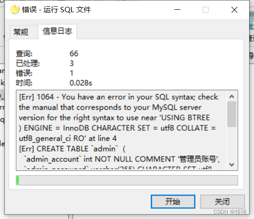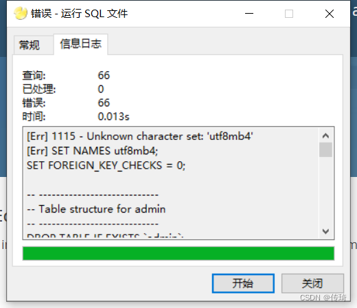 First of all, in order to complete the school curriculum design, I found free information from the Internet. When importing its SQL file into Navicat, the first problem that occurred was
