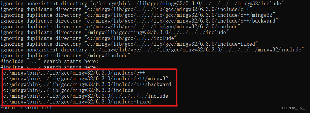 - We find that our includePath has not been updated, which is also the main cause of the problem. At this time, we update it. We use win+R to open the cmd run window, enter the command: g++ -v -E -x c++ -, check the path (red box in the picture below), and copy it.