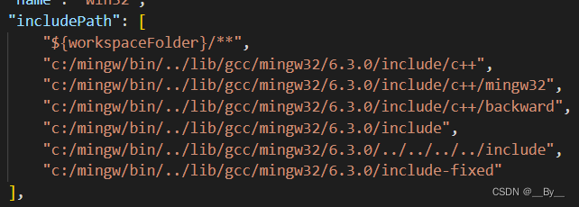 - After copying the queried path, we return to the JSON configuration page and paste the path into includePath. Pay attention to the addition of commas and quotation marks, and change the "" in the path to "/", as shown in the figure below. , and save it. Restart VScode and the problem will be solved!
