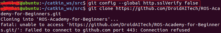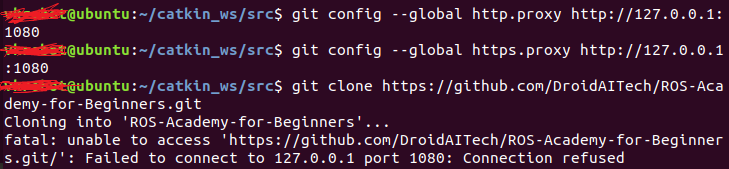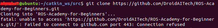 The first time I used git clone in the ubuntu terminal, I got the error Failed to connect to github.com port 443: Connection refused. After struggling for a long time, I finally downloaded it successfully