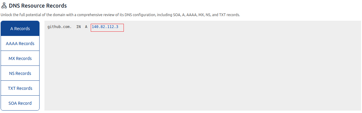 Scroll down to find DNS Resource Records and remember the IP address below