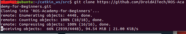 5) Re-enter git clone https://github.com/DroidAITech/ROS-Academy-for-Beginners.git in the original terminal (change to your own github project address)